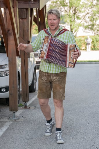 ...und mit "Gstanzl" und Stimmung geht`s dann rein zur Tafel